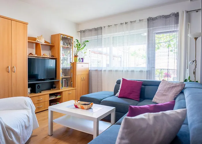 Als u in Apartment Arija Zadar van 75 m² verblijft, kunt u de Plein van Vijf Bronnen bereiken, gelegen 2 km verder. Een van de hoogtepunten van het 1-slaapkamer appartement is een terras, waar gasten kunnen genieten van het uitzicht op de tuin.